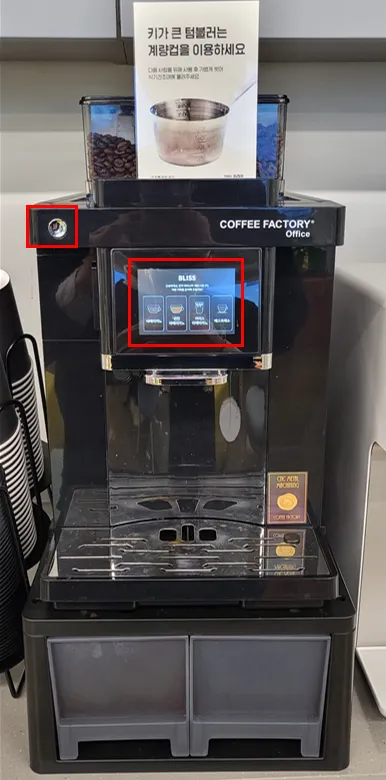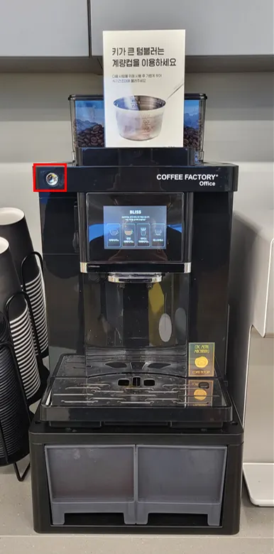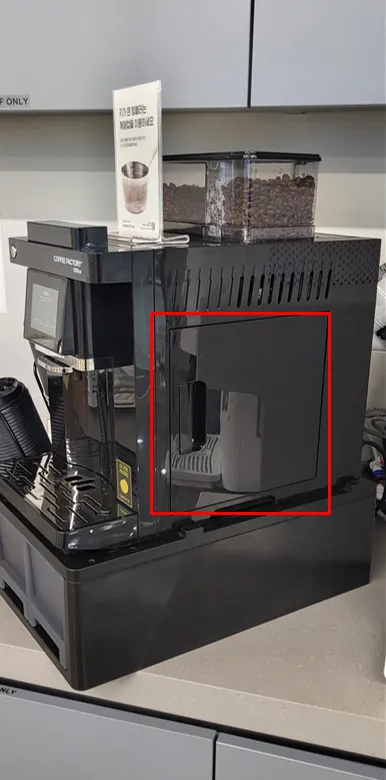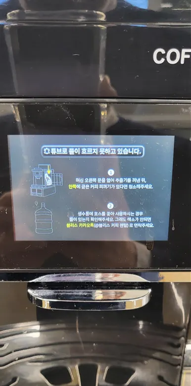 먼저 이용에 불편을 드려 죄송합니다. 상주직원에게 말씀해 주시면 신속히 조치해 드리겠습니다. 상주직원 부재 중 커피머신을 신속히 이용하고 싶으실 경우, 커피머신을 재부팅하면 이용이 가능합니다. 아래는 커피머신 재부팅에 대한 안내입니다.