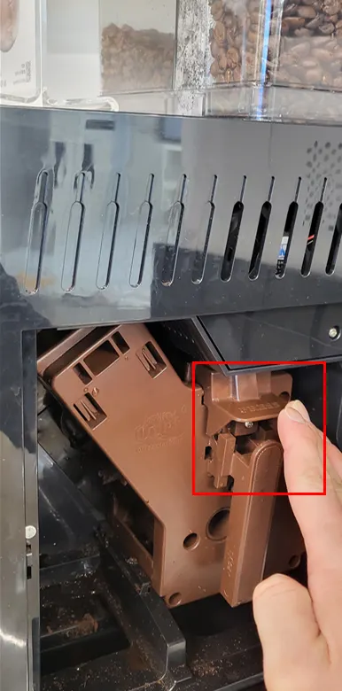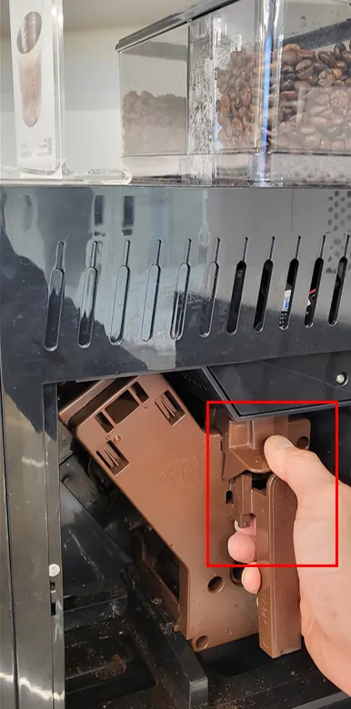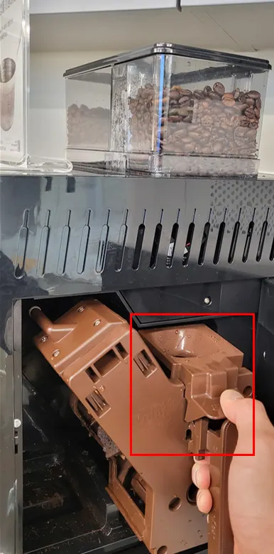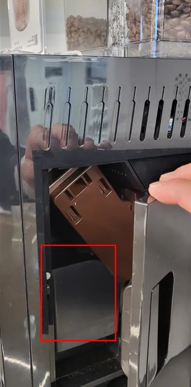 머신을 왼쪽으로 돌려 내부를 열어주세요.