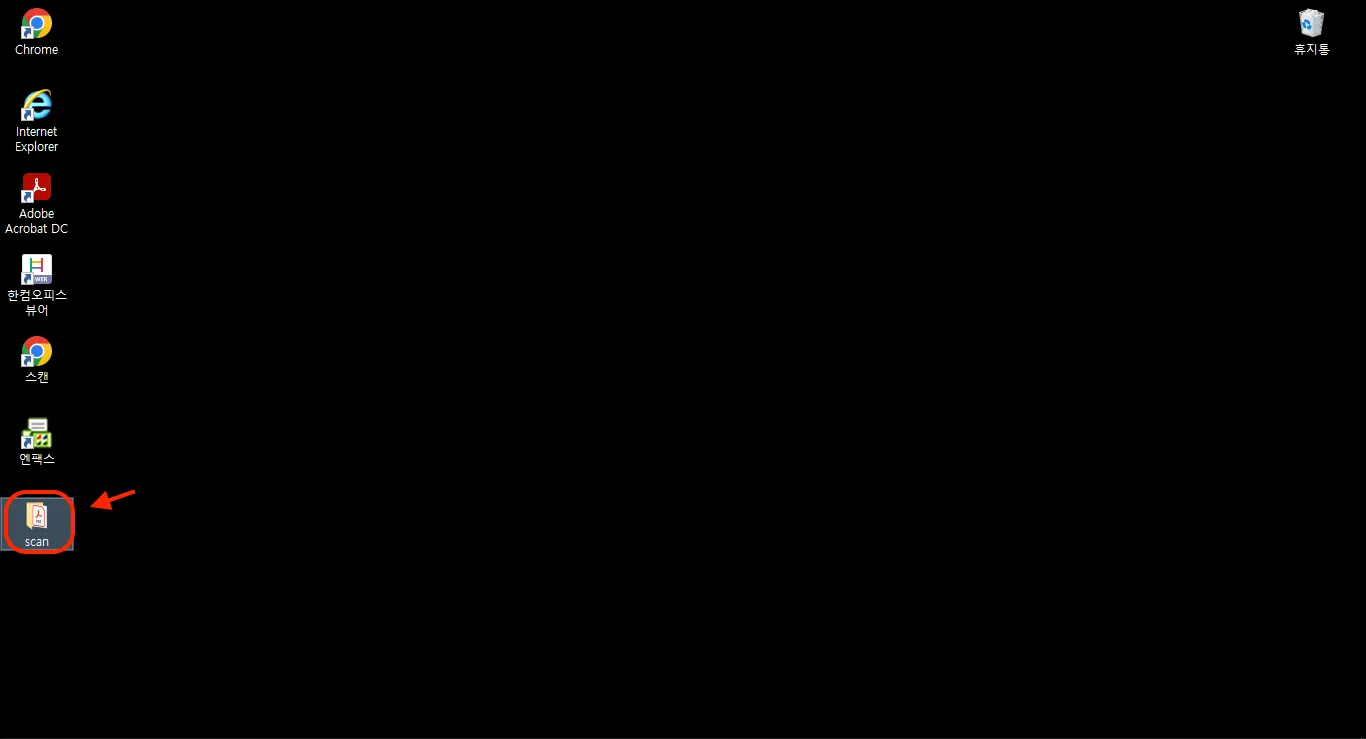 스캔된 문서를 확인하기 위해 공용 PC에서 “scan” 폴더를 열어주세요.