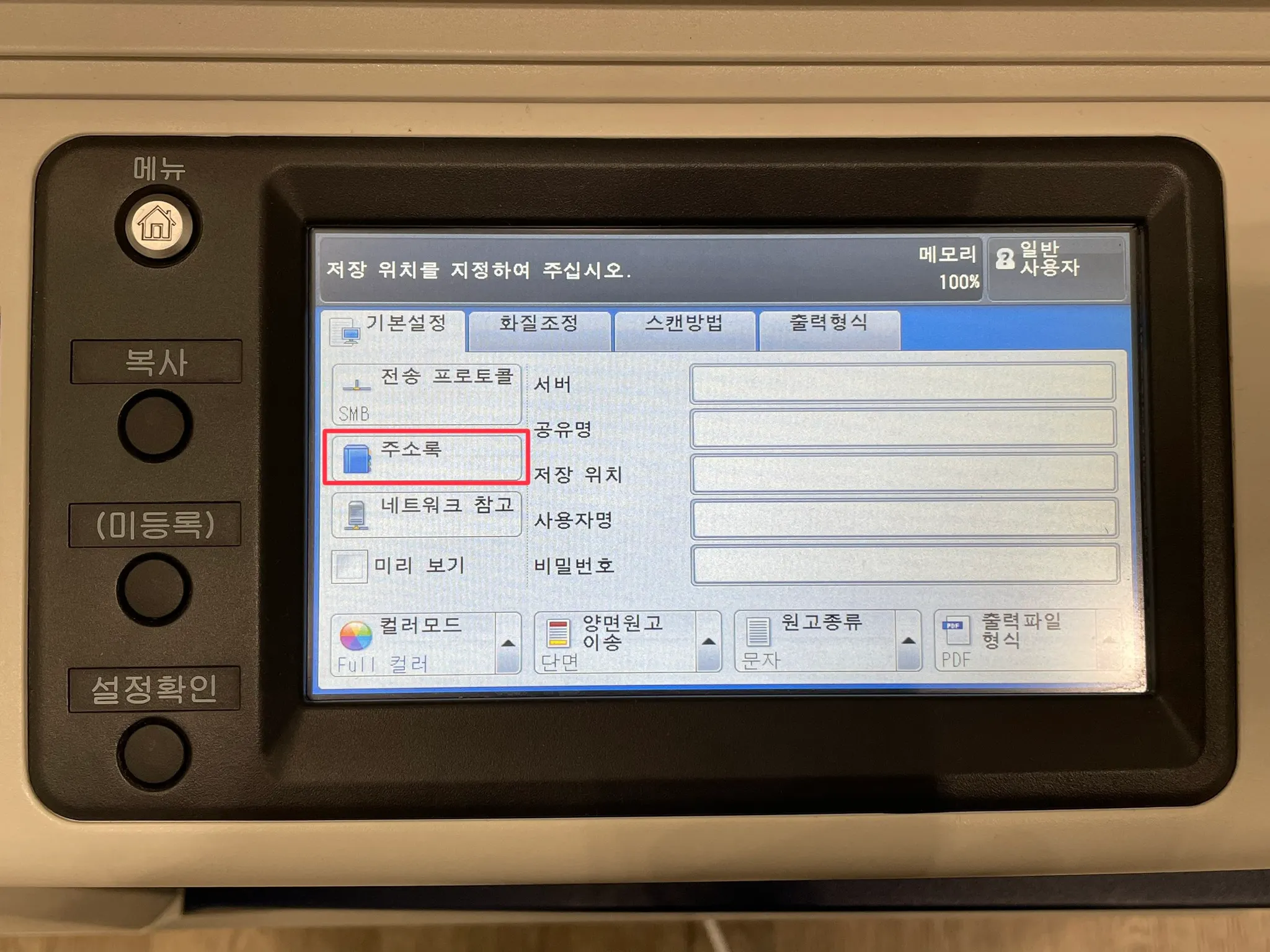 아래의 화면에서 "주소록" 버튼을 눌러주세요