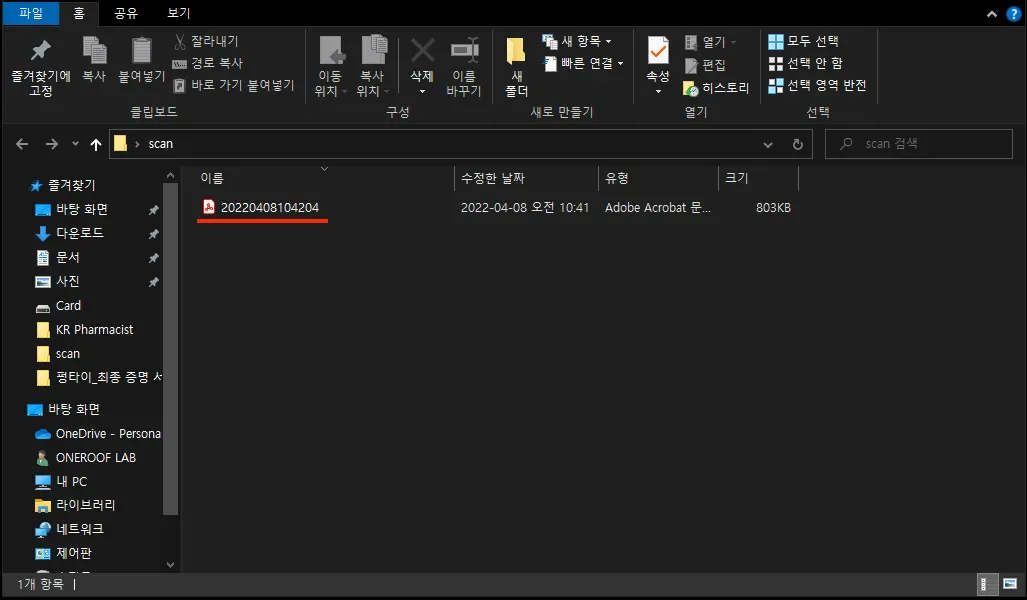 “scan" 폴더 안에서 파일을 확인할 수 있어요.