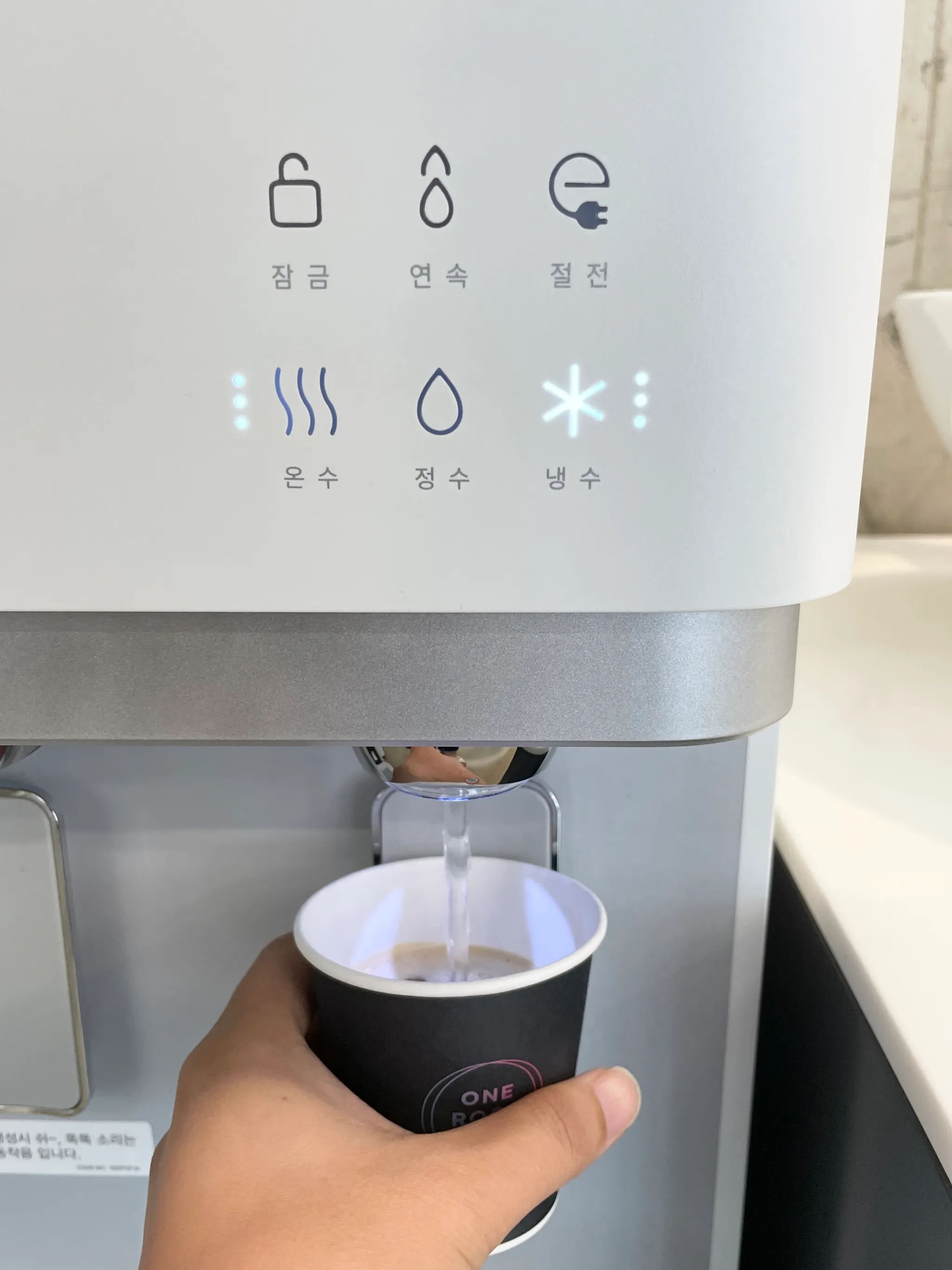 정수기에서 차가운 물을 추가하면 아이스 아메리카노 완성!