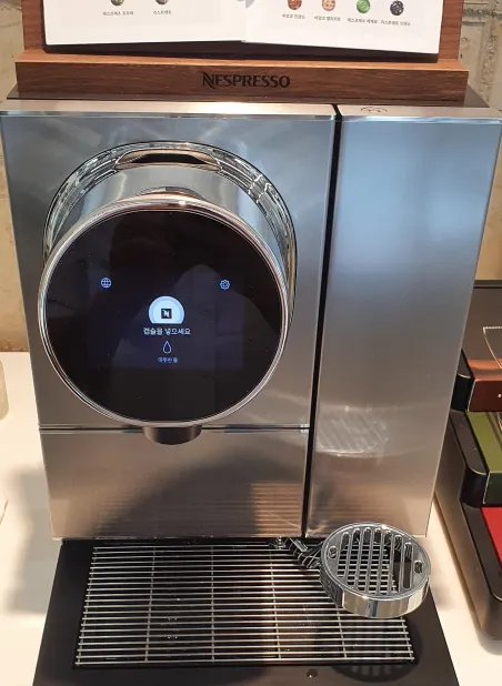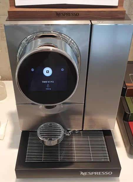 화면에 "캡슐을 넣으세요"라는 문구가 나오면 정상 작동됩니다.