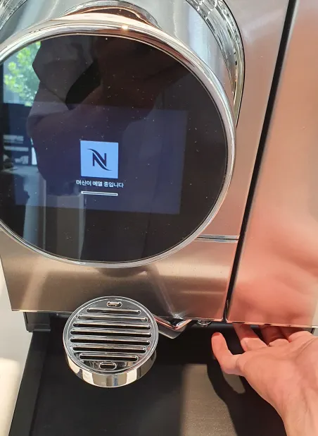 스위치를 다시 켜면 머신이 예열중이라는 문구가 뜹니다. 예열이 완료되는데엔 수 분이 걸릴 수 있습니다.