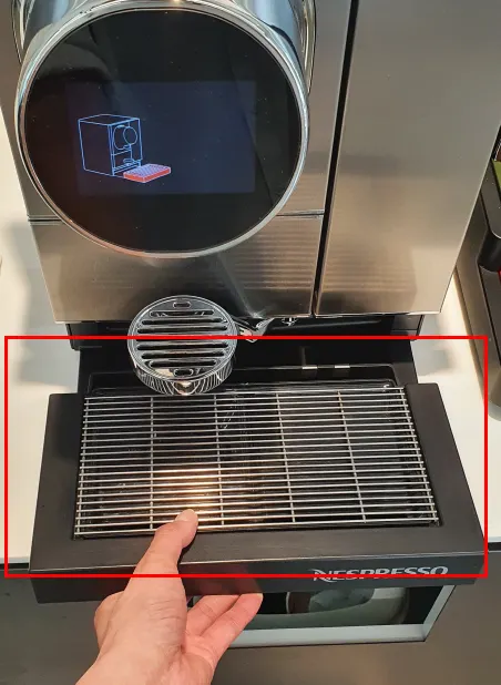 커피머신 위에 마련된 집게를 이용하여 캡슐을 위에서 밀어 캡슐을 떨어뜨려 주세요.