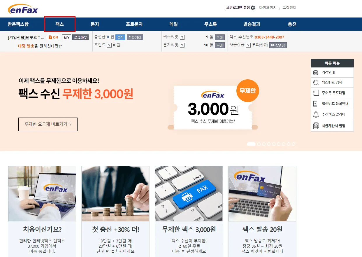 팩스 아이콘을 클릭하면 엔팩스 홈페이지에 들어가게 됩니다