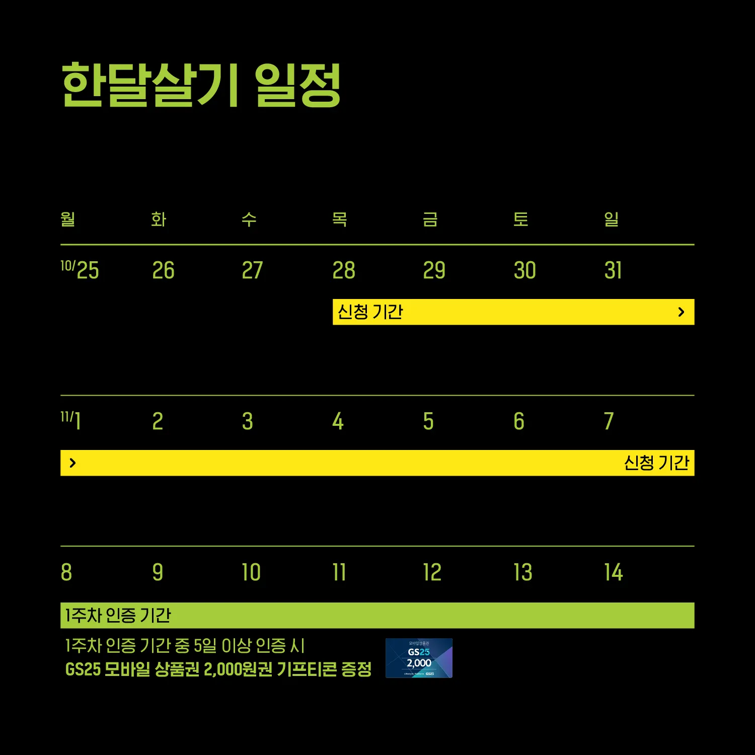 신청하는 기간 2021. 10. 28. ~ 11. 7.