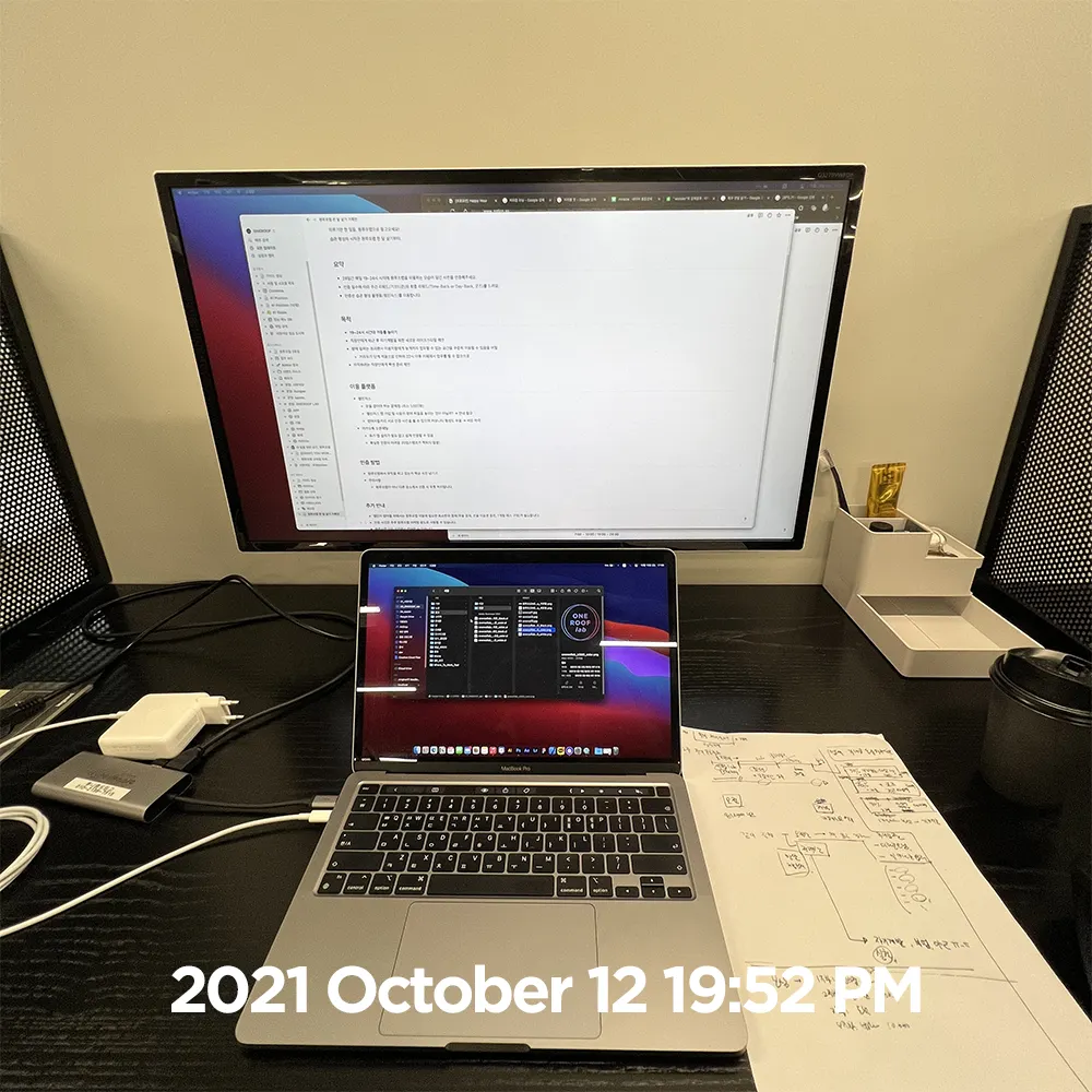원루프랩 책상에서 무엇을 하고 있는지 보여주세요