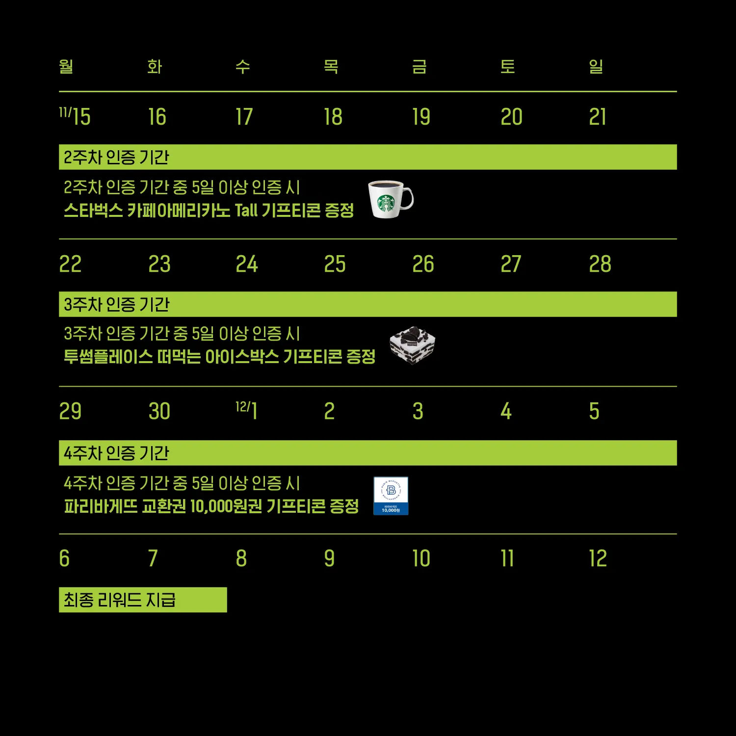 일주일에 5일만 성공하면 리워드를 GET, GET!