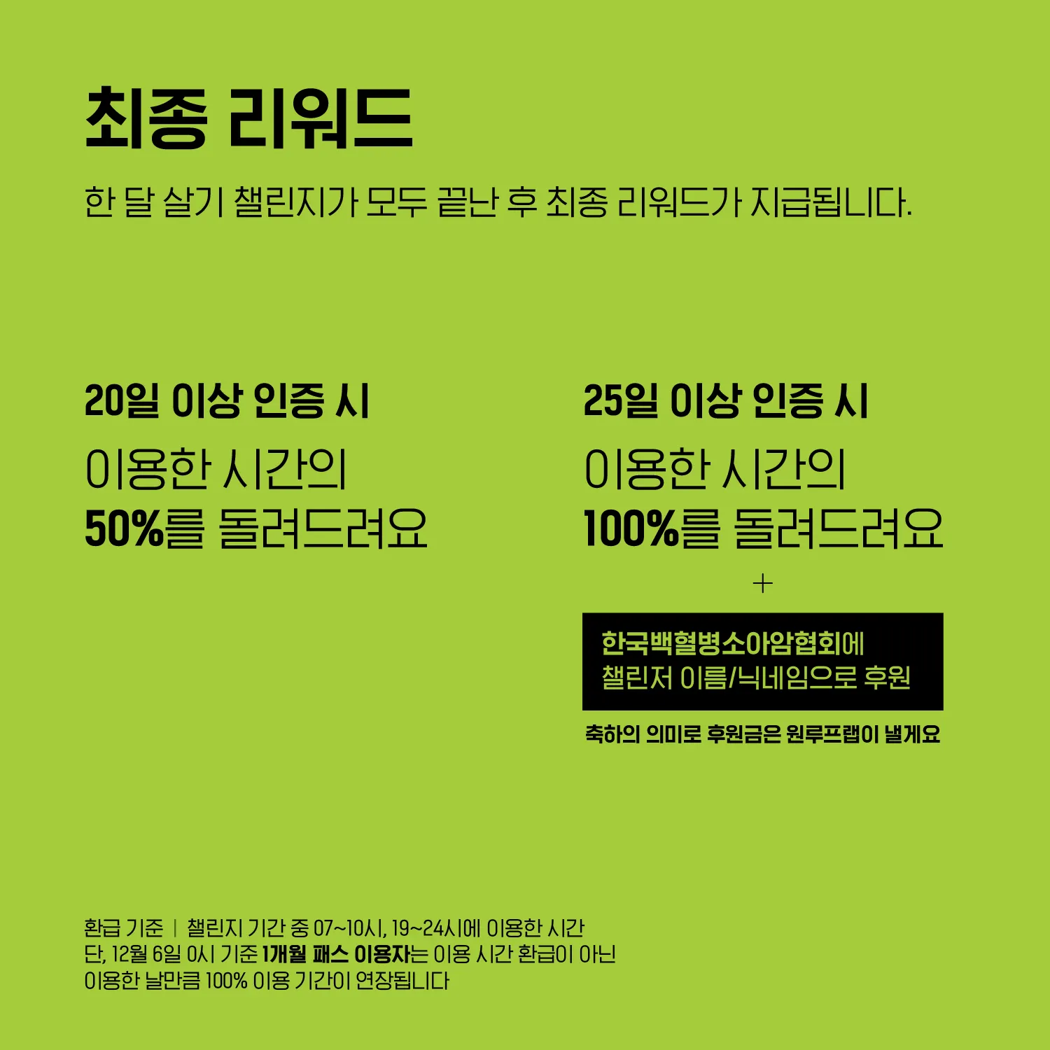 20일 이상 인증 시, 한 달 살기 인증 시간 동안
